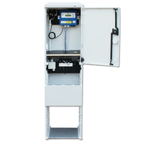 Eine SBR Steuerung Flexa in Kombination mit einer Magnetventilleiste 4 fach, ist montiert in dieser Aussensäule. Dazu wird geliefert ein Verdichter AP80 Thomas Rietschle.Der Schaltschrank hat eine Tiefe von 320 mm. Somit ist ein bequemes Einsetzen des Verdichters möglich. Zwei Ventilationsstopfen sorgen für ausreichende Kühlung. Eine LED im Ansichtsbereich signalisiert die Störung sowie den Netzausfall Alarm. Die Abzeigdose im Anschlussbereich ermöglicht ein problemloses Anschließen eines Erdkabels. Über die intergriete Steckdose wird die Steuerung mit Netzspannung versorgt, welche auch zu Wartungszwecken verwendet werden kann.
